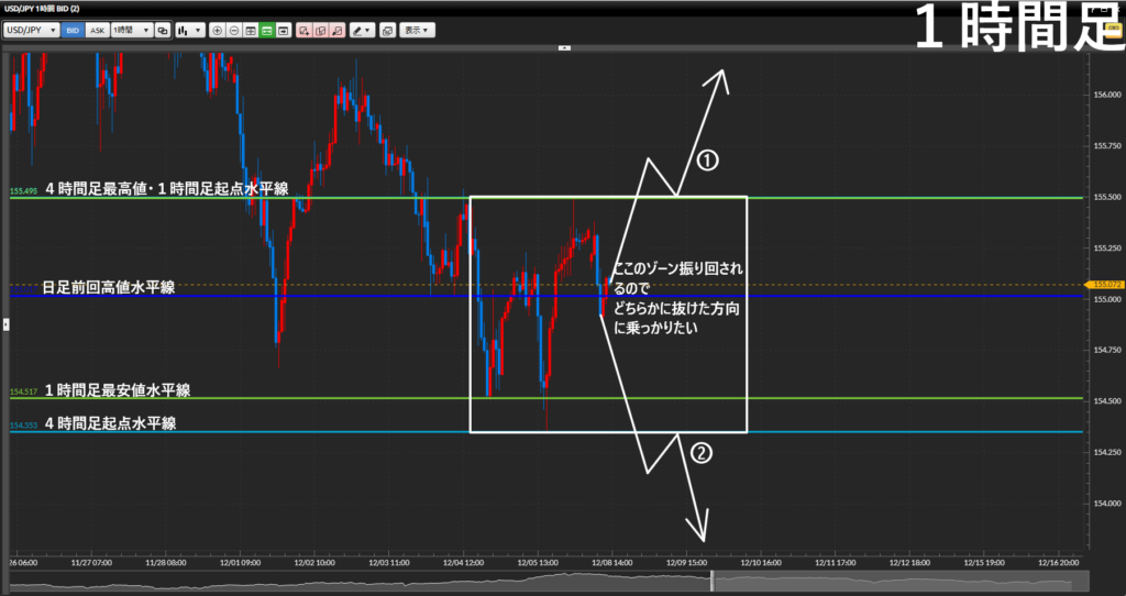 今回は【 日足 → 4時間足 → 1時間足】の順に、