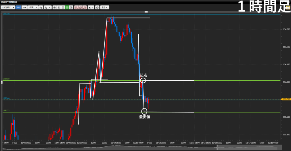 - サブ戦略:1時間足最安値を下抜けて4時間足・1時間足ともに下目線での戦い