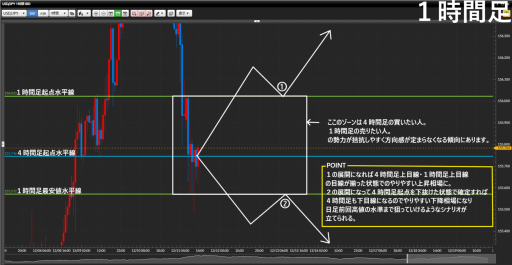 - メイン戦略:1時間足起点を上抜けして4時間足・1時間足ともに上目線での戦い
