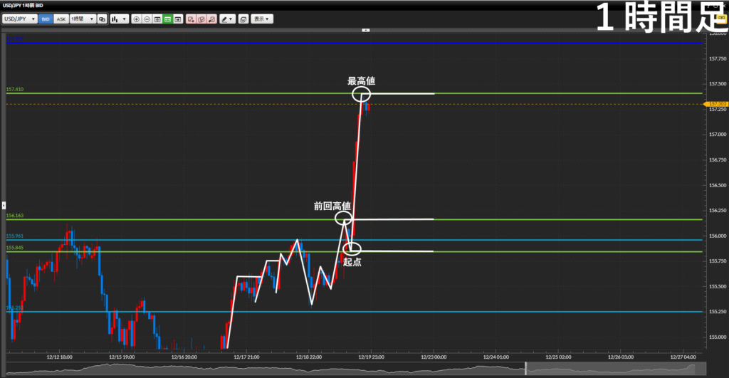 - サブ戦略:1時間足前回高値まで引き付けて押し目買い