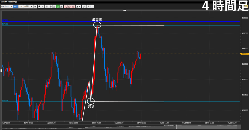 - 4時間足も起点・終点で見る。