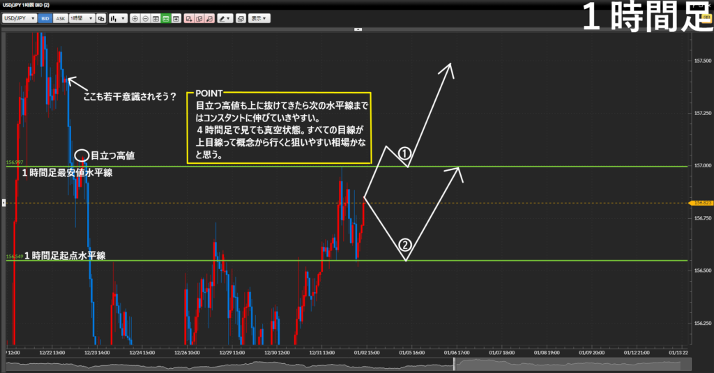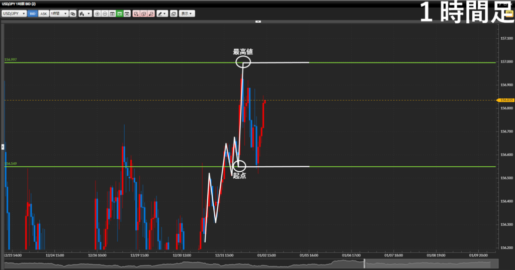 - 更に1時間足に落として戦略を考える。