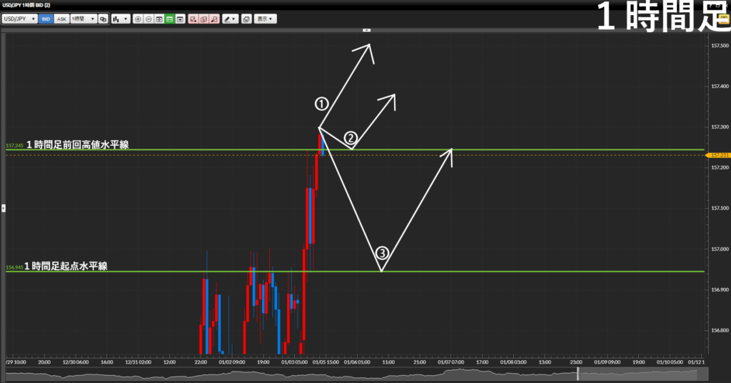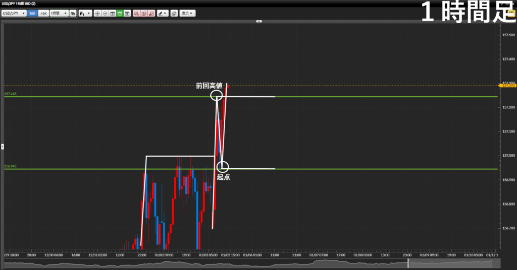 - サブ戦略:1時間足前回高値まで引き付けて押し目買い
