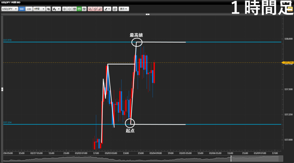 今回は【 日足 → 4時間足 → 1時間足】の順に、